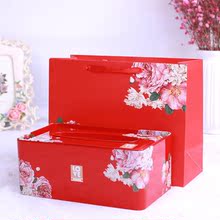 大号喜糖盒套装结婚马口铁创意抽纸盒式回礼盒手提回礼袋喜糖包装