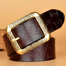 复古民族风女士皮带平滑扣宽真皮简约百搭休闲裤带牛皮女腰带压花