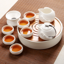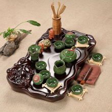 宜兴紫砂茶具套装 整套陶瓷功夫茶具 仿实木茶盘 佛茶盘套组