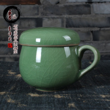龙泉青瓷 陶瓷茶具 过滤冰裂茶杯带盖杯子 花茶杯 泡茶杯特色杯