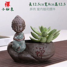 多肉紫砂小和尚如来茶宠花盆插花器陶瓷盆栽家居花瓶创意摆件精品