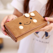 磨砂钱包女式长款三折韩版卡通女生2017新款时尚复古零钱位淑女潮