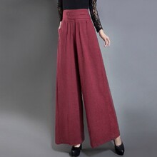 2017春装新款砂洗纯亚麻阔腿裤裙裤 大码宽松休闲裤甩腿裤女