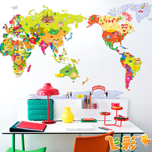 世界地图墙贴纸 中国地图儿童房装饰卧室幼儿园卡通背景墙壁贴画