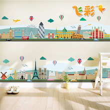 飞彩儿童房童装玩具店铺腰线卡通装饰墙贴纸防水踢脚线 城市之旅