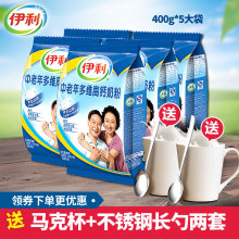 伊利中老年多维高钙奶粉400g*5袋无蔗糖营养奶粉老年人成人小袋装