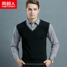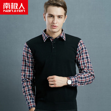 南极人2016秋冬新款针织衫商务时尚保暖上衣加绒加厚假两件衬衫男