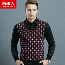 聚南极人保暖针织衫男士假两件衬衫领修身毛衣加绒中年商务毛线衫