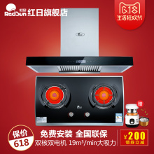 红日抽油烟机燃气灶套餐顶吸油烟机灶具套装特价家用ET8002+E003C