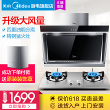 美的DJ570R+Q360B抽油烟机燃气灶套餐蒸汽洗大吸力侧吸式烟灶套装