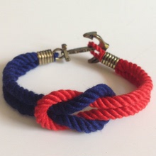 海军风手工纯棉精美编织潮流手环男欧美时尚手绳情侣打结船锚手链