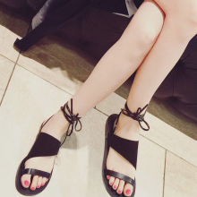 2017夏季新款罗马绑带女凉鞋平底沙滩鞋磨砂真皮露趾一字带女凉鞋