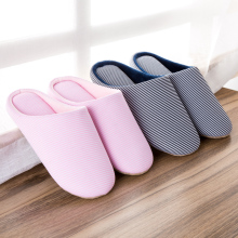 棉拖鞋女冬室内情侣可爱条纹蝴蝶拖鞋月子鞋家居厚底保暖冬天拖鞋