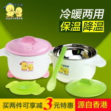 贝贝鸭儿童餐具宝宝不锈钢吸盘碗套装婴儿注水保温碗带盖勺辅食碗