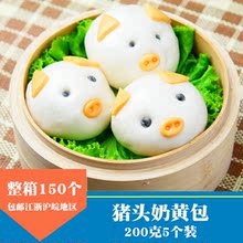 亚洲渔港儿童卡通猪头奶黄包 港式点心早餐流沙包小猪包子200g5个