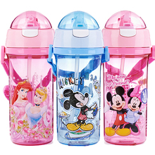 包邮 无味迪士尼米奇儿童水杯软吸管杯透明盖学生水杯