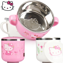 包邮Hello Kitty儿童幼儿餐具口杯汤碗不锈钢带盖防烫