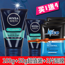 妮维雅男士洗面奶控油劲爽洁面乳100G+50G洁面膏深层清洁控油
