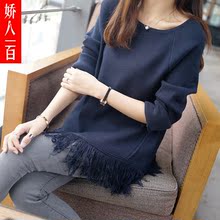 2016秋季新品针织衫女士长袖圆领下摆流苏宽松毛衣打底新款外套潮
