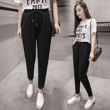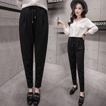 春夏女装新款西装裤黑色百搭休闲裤宽松系带九分裤显瘦哈伦小脚裤