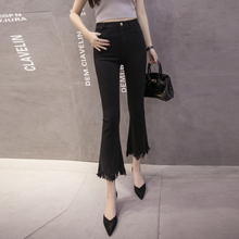 2017春季个性流苏微喇叭打底裤外穿女夏九分裤修身显瘦弹力牛仔裤