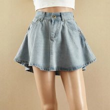 夏季新品欧美大牌百搭伞型高腰喇叭牛仔裙复古前短后长半身裙