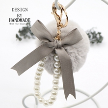 毛球钥匙扣 韩国可爱毛绒挂件汽车装饰品珍珠钥匙环 包包挂饰品女