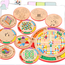 儿童早教多功能十合一跳棋飞行五子斗兽棋小孩木质玩具儿童礼物