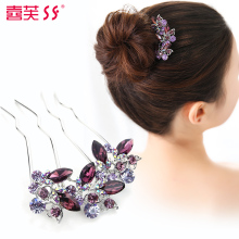 喜芙发饰水钻插梳 合成水晶盘发发梳韩版头饰 流行发插美丽发饰品