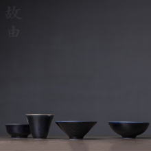 [故由]景德镇瓷霁蓝色釉薄胎大斗笠杯功夫茶具茶杯主人杯品茗杯子