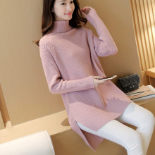 2016秋冬新款韩版中长款半高领套头毛衣外套女装宽松针织衫打底衫