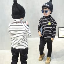 男童高领长袖T恤加绒加厚2016秋冬装韩版纯棉条纹打底衫中童t体恤