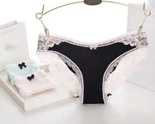 无痕牛仔丝低腰内裤 夏 性感透气蕾丝拼接女士纯棉档 三角裤内裤