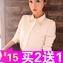 16春秋季新款钉珠衬衫女装学生韩版闺蜜装修身显瘦带钻领打底衬衣