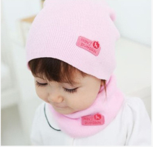 包邮 宝宝皮标春秋冬季婴儿童男女公主护耳围巾套头帽子围脖套装