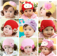 包邮春秋冬纯棉0-1-2-3岁婴儿帽女宝宝棉布假发帽儿童加厚套头帽