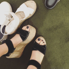 2017夏季凉鞋女夏坡跟鞋松糕鞋草编防水台罗马高跟鞋厚底