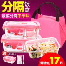 优D新品带分隔玻璃饭盒 微波炉分格便当盒 耐热保鲜盒密封碗套装