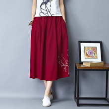 2017春夏新款民族风女装长裙复古棉麻文艺大摆裙刺绣中国风半身裙