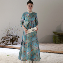 佛笑缘之六朝风调 精细纯麻真丝绡领口旗袍长裙L115少量现货