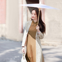 伶俐柠檬30306中国风棉麻民族风文艺范女装中长款风衣外套两件套