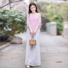 伶俐柠檬原创设计40188复古中国风女装休闲裤文艺范长裤阔腿裤