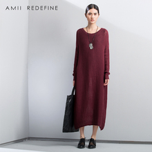 [东方极简]秋季新品女装宽松针织裙长款毛衣裙毛衣连衣裙