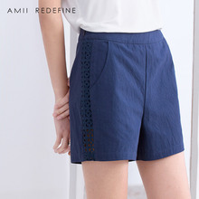 [东方极简]2017夏季新款女装棉质文艺直筒休闲大码外穿白色短裤夏