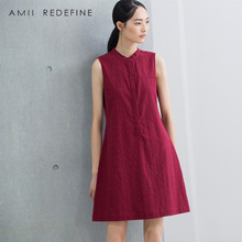 [东方极简]春秋文艺无袖背心显瘦A字裙休闲纯色纯棉连衣裙女夏