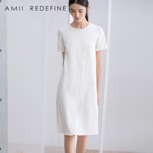 [东方极简]2017夏季新款女装简约短袖圆领亚麻大码纯色连衣裙夏