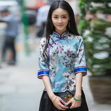 华族经典春装真丝唐装女旗袍上衣2017新款复古中式修身改良七分袖