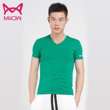 MiiOW/猫人新款纯色棉质休闲时尚男士t恤 运动短袖V领上衣家居服