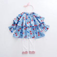 女童娃娃衫 2017年春季新款童装宝宝樱桃印花松紧领上衣长袖裙衫