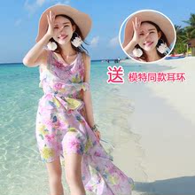 波西米亚夏甜美雪纺海滩裙沙滩裙海边度假裙短裙连体裤显瘦连衣裙